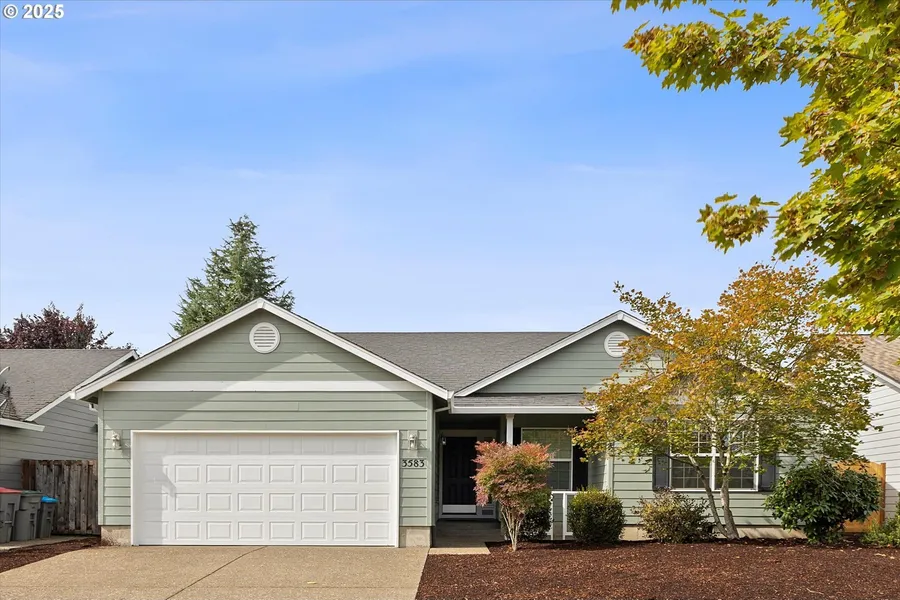 This single-level home is nestled in one of NE McMinnville's most desirable neighborhoods-just moments from Chegwyn Farms Park, Grandhaven Elementary, local churches, shopping, dining, and entertainment. With a freshly painted exterior and crisp new bark dust, the curb appeal shines. Step inside as vaulted ceilings and abundant natural light create an open bright atmosphere. The thoughtful open-concept floor plan is ideal for modern living-whether you're hosting guests, keeping an eye on little ones, or simply enjoying a quiet evening at home, this home delivers. The primary features a private ensuite bathroom with a walk-in shower and a walk-in closet complete with organizer units. The interior offers a blank canvas-ready for you to add your ideas, your fresh paint and carpet to make it uniquely yours. Outside, the fully fenced spacious backyard is ready for your outdoor vision. Whether you're dreaming of a garden oasis, fun lawn games, or a deck perfect for entertaining under the stars, there's room to create it all. An oversized two-car garage with built-in shelving offers convenient storage and organization. Whether you're upsizing, downsizing, or planting roots for the first time, this home is the perfect place to begin your next chapter. Schedule your showing and make this home your own!