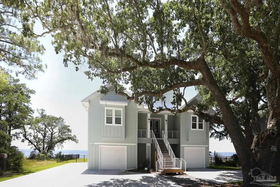 Fully Furnished Luxury Waterfront Living!! This custom built home sits on a half acre lot directly on Escambia Bay. Nestled among mature oaks in a quiet cup-da-sac, this home is waterfront living at its best. The 330' dock leads to a 30' boat house with lift. There is a 15'x30' platform great for entertaining. When you enter the front door the views through the rear French doors sets the stage. With coffer ceiling in the living room with stacked stone fireplace with built in book cases on each side. The living room is directly open to the kitchen and dining room. The kitchen features quartz countertops, gas cooktop, double oven, dishwasher and fridge. The dining room is directly off the kitchen with spectacular views of the bay. The butlers pantry you will find more cabinets along with a beverage fridge with a custom pantry with additional storage and microwave. The large main bedroom ha...
