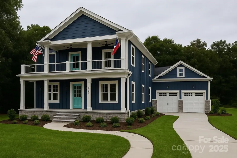 Experience refined Southern living in this exceptional two-story Charleston-style residence, perfectly situated on a serene and private 2+ acre lot. With inviting upper and lower covered porches, along with a spacious screened rear porch, this home seamlessly blends timeless architectural charm with modern luxury. Now nearing completion, there is still an opportunity to personalize select finishes and make this home uniquely yours. Thoughtfully designed, the floor plan features 4 generously sized bedrooms, 3 full baths, a versatile loft/library with custom built-ins, and an impressive 750 sq. ft. bonus room ready to adapt to your family's lifestyle. Exquisite details are found throughout, including extensive crown moldings, hardwood flooring, designer tile in every bath, and custom closets. The gourmet kitchen is equipped with a built-in beverage bar, while the primary suite offers its own private beverage station-perfect for a morning coffee or evening glass of wine. An oversized garage provides ample space for a workshop, equipment storage, or hobbies. Crafted with high-end custom finishes, this home epitomizes both elegance and function. Enjoy the natural beauty of the setting, where the gentle sound of a nearby creek after a rainfall and the chorus of birds and crickets create a tranquil backdrop for evenings spent on the expansive screened porch. This week an approx 1,000 square foot outdoor living space will be added at the rear of the house. This is Southern living at its finest.