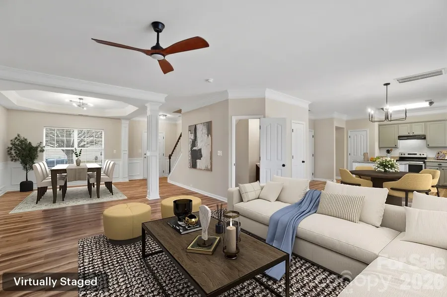 Back on the market and better than ever! This refreshed four bedroom, 2.5 bath, two-car garage home is truly move-in ready featuring newly painted cabinets, brand new LVP flooring and carpet, new light fixtures, fresh paint, new door hardware and more throughout! You'll love the open kitchen that has an abundance of cabinet and counterspace, island with trimwork added, new faucet, crown molding and eat-in space. The Family Room has a gas fireplace, crown molding and is open to the kitchen and also front Dining Room. The front Dining Room could be perfectly used as additional Flex space for additional sitting, home office or play space. It has a tray ceiling, new lighting and molding details. Flexible bedroom layout offers four bedrooms or three bedrooms with a Bonus Room. All bedrooms are spacious and all are upstairs for privacy. Primary Suite is large with a vaulted ceiling and ceiling...
