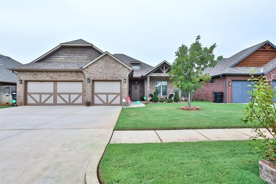 ***MOTIVATED SELLER*** Wow! Take a look this beautiful home that has a ton to offer. Open concept home is a split floor plan where secondary and primary bedrooms are separate from each other. Living room and kitchen huge, providing lots of natural light along with plenty of cabinet and counter space. Kitchen also features additional counter space for your mixers, coffee machines, etc. Gas stove was replaced. Home has separate mud room / laundry area. Secondary bedrooms are of good size with one of the rooms features a Murphy bed. Primary suite features dual sinks, separate shower and tub along with huge walk in closet. As you walk in the home there is an additional flex room you can use (study, office, game room, dining room... your choice). Outdoor amenities include covered porch and patio, sprinkler system & fully guttered. Storm shelter located in garage. Easy access to I-35, I-240 and minutes away from Tinker AFB, downtown OKC and Norman. Ask your local real estate agent regarding a VA assumption loan. Call for your private showing today!