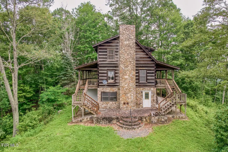 True log cabin built with western cedar logs located in Callalantee Mountain Resort and is situated on 3.54 acres! This nice two bedroom, two bath cabin offers plenty of privacy and has mountain Views! The cabin has a beautiful stone fireplace that is the focal point of the large living room. The living room has a cathedral ceiling and is very inviting. The living room is also open to the kitchen and dining room. The cabin also offers a covered front porch and a covered back porch. The primary bedroom and bath are located on the main floor, while a guest bedroom and loft is located upstairs. The unfinished basement has a wood stove and it would be great for storage or for a workshop. This cabin would make a great get-a-way or make a great primary residence. Come sit on the covered porch and enjoy the East Tennessee mountains!