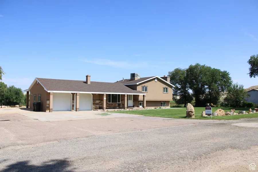 Tucked away on a quiet lane in Myton, this 5.51-acre irrigated horse ranch blends comfort, function, and lifestyle. The spacious 2,928 sq ft four-level home offers 3 bedrooms, 2.5 baths, two expansive family rooms, and a craft or office space that could also serve as a fourth bedroom. The kitchen has been updated with new cabinetry, and both the roof and stucco are only 6 years old, giving the home lasting curb appeal. Outdoors, nearly 3 acres of irrigated pasture create a lush setting for horses or livestock. The property includes a colossal 7,800 sq ft equipment shed with room for horse stalls, hay storage, RVs, or farm equipment. A 918 sq ft commercial-grade workshop with 220V power, bright lighting, and a brand-new roof offers endless possibilities for projects and storage. Dedicated RV hookups and a septic system add convenience, while additional sheds across the property provide extra utility. Every detail has been designed for a true ranch lifestyle. Picture horses grazing in the pastures, projects coming to life in the shop, and evenings spent under wide-open skies. Properties like this are rare, a turnkey retreat ready for you to step in and make your own.