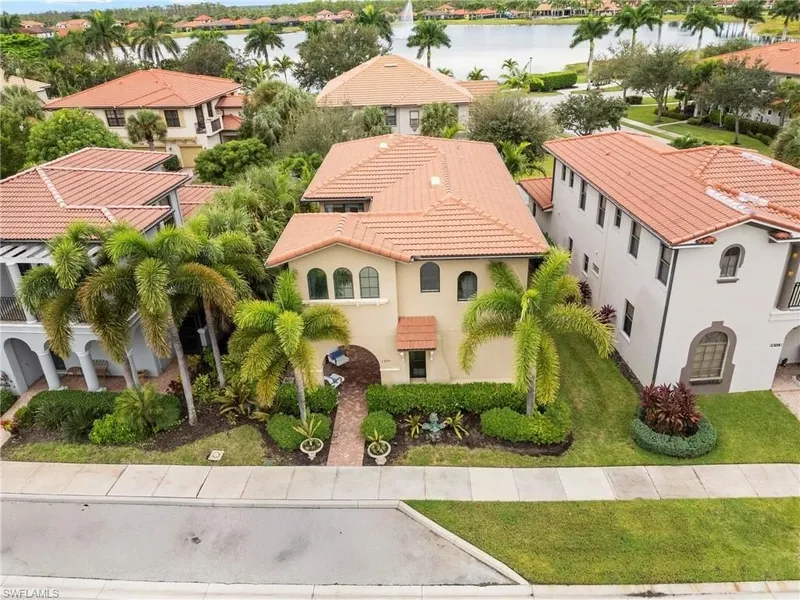 Welcome to this gorgeous WCI-built home, complete with 2nd floor concrete construction (reduced insurance cost)! Offering 3 bedrooms 2.5 baths and a 2 car garage. The courtyard style entry provides a grand first impression, while lake views from the front add a serene touch. Step inside to stainless steel appliances, granite countertops with a large island, plentiful dining area and picturesque windows. Upgraded custom cabinetry features soft-close doors and pull-out shelves. The primary suite boost an oversized walk in closet, soaking tub, dual vanities, an oversized frameless glass shower. Two generously sized guest bedrooms share a full bath, offering privacy and comfort for visitors. The main floor includes a powder room, large indoor laundry room, Impact windows and doors, large tankless water heater, upgraded Home Defense pest system for added peace of mind. Enjoy resort-style living with community amenities such as a lakefront heated pool, fitness center, theater, pickleball and bocce with an active social calendar. Affordable HOA fees. Just minutes to Marco Island and Downtown Naples, pristine beaches, supermarkets, shops and plenty of dining!