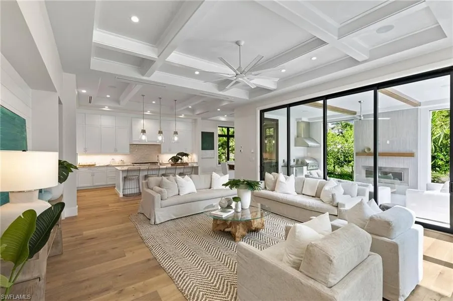JUST REDUCED NEW CONSTRUCTION with Location just 2 blocks to Old Naples and around the corner from Coquina and Moorings!! PRICING CANT COMPARE!! WOW Factor on 7th Avenue North has arrived! This New Construction home is built to the finest standards and offers a new level of quality and attention to detail from Jerulle Builders! Known for taking "no short cuts" in the unseen part of their construction, the entire product matches the exterior beauty of their fine finishes and design. The exterior charm is timeless with the look and feel of downtown Naples, never to be labeled as dated but in Naples charming taste for a lifetime. Before reaching the front door, you hear the alluring waterfalls, see the blue tiled pool and feel the excitement this property offers! Enter into a refreshing vision of expansive wide plank wood floors and a view of the great room with distant view of the open kit...