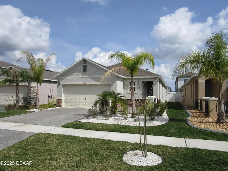 Welcome to 349 Caryota Court, a beautifully upgraded 3-bedroom, 2-bath single-story home built in 2022, nestled in The Palms neighborhood of Venetian Bay - one of New Smyrna Beach's most desirable golf-course communities. Combining modern construction, luxury finishes, and resort-style amenities, this nearly new home offers the perfect blend of comfort, design, and Florida lifestyle. Enjoy a bright open-concept layout with durable concrete block construction, plantation shutters, and natural light throughout. The chef's kitchen showcases granite countertops, stainless-steel appliances, upgraded cabinetry, and a large entertaining island that opens to the living and dining spaces - ideal for hosting friends and family. The spacious owner's suite features a walk-in closet and a luxurious en-suite bath, while two additional bedrooms provide flexibility for guests, family, or a home office. ...