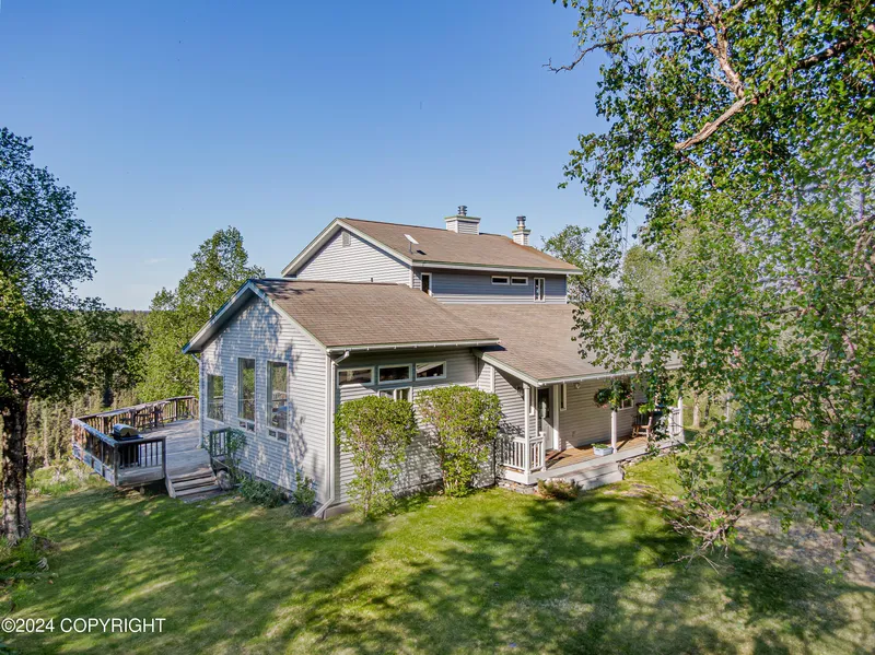 High on a ridge, this 3 story home and view offer privacy and a million dollar panorama of the entire lower Ninilchik River and valley, west across Cook Inlet to Mt Redoubt Volcano, the focal point of magnificent sunsets. Abundant wildlife, moose, eagles, bears, wolves, coyotes, and waterfowl are the natural landscape observed here.
