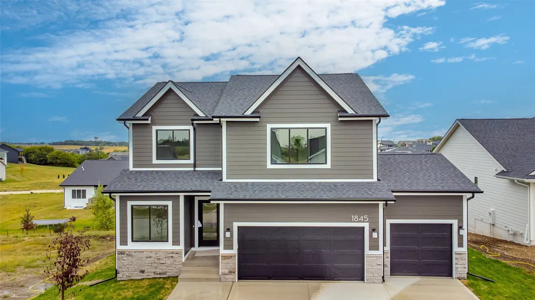 Welcome to the Berkley plan by KRM, an exceptional two-story gem designed with you in mind. This home seamlessly blends charm and craftsmanship, featuring durable Hardie siding for long-lasting curb appeal. Step inside to discover a bright, open layout with large windows that fill the space with natural light. Highlights include a main-floor office, a stunning electric fireplace, a dream kitchen, and a 12x12 covered deck, perfect for relaxing or entertaining. Upstairs, the primary suite serves as a spa-like retreat with a spacious tiled shower and dual vanity. You'll also find three additional bedrooms, a full bathroom, and the convenience of second-floor laundry. Built with superior behind-the-walls quality, the home includes BIBS insulation, Zip System exterior sheathing, Advantek subflooring, and Form-a-Drain foundation protection. Designed for comfort, style, and long-term value, the...
