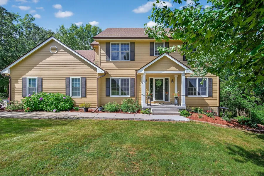 Tucked away at the end of a quiet cul-de-sac, this stunning property offers privacy, natural beauty, and room to roam. Surrounded by timber with a creek running nearby, you'll enjoy breathtaking views and abundant wildlife right from your backyard. Inside, the home features a walkout basement with 9-foot ceilings and a spacious, open layout. The kitchen is designed for both style and function, complete with a center island with bar sink, stainless steel appliances, and rich cherry cabinets. It flows seamlessly into the family room with a cozy fireplace, perfect for gatherings. An additional room allows for a main-level office space. Upstairs, you'll find the convenient 2nd-floor laundry and a primary suite with a walk-in closet and full bath. The partially finished basement adds even more living space with a rec room and a 5th bedroom/office. This room has a huge walk-in closet and it's ...