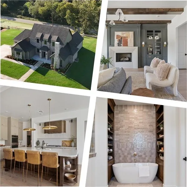 This thoughtfully crafted home blends classic Tudor architecture with fresh, transitional design. The exterior showcases steeply pitched gables, bronze-trimmed windows, and a rich mix of brick, board-and-batten siding, and stone accents, creating inviting curb appeal. Inside, warm neutral tones, engineered wood flooring, and curated lighting fixtures set a welcoming tone. The open-concept living area features a striking cast stone fireplace, a chef-inspired kitchen with custom cabinetry, and a spacious dining area perfect for everyday living or entertaining. A serene primary suite offers a spa-like bath with designer tile and a soaking tub, while additional bedrooms provide comfortable accommodations for guests. Thoughtful details, from the study's built-ins to the stylish powder bath, ensure every space is both functional and beautiful. Outdoors, a covered patio invites relaxation year-...