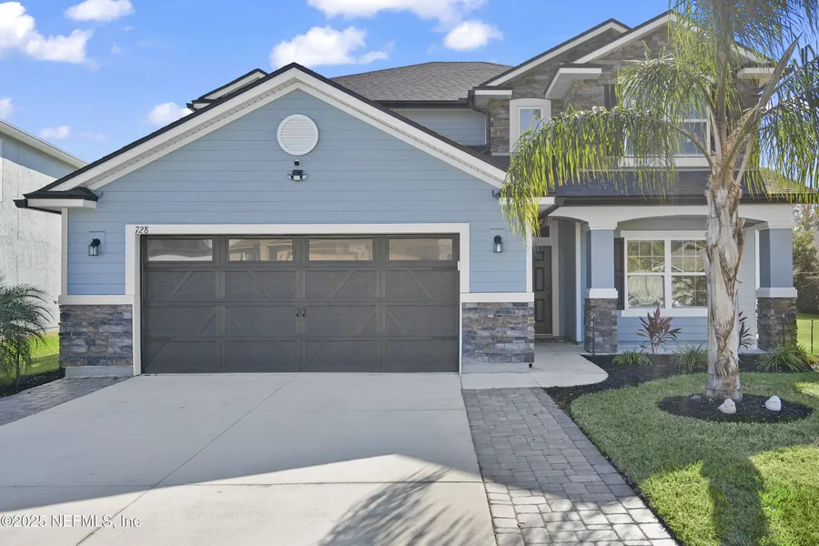 EXTREMELY MOTIVATED SELLER - $10K PRICE IMPROVEMENT! VA buyers may qualify to assume an incredible 2.25% mortgage, and a 3-2-1 buy down is available with the preferred lender on all acceptable offers! This beautifully upgraded 5-bedroom, 3.5-bath multigenerational home sits on a premium corner lot with tranquil water and preserve views. Built in 2020, it offers nearly 3,000 sq ft of energy-efficient living, including solar panels, tankless water heater, and French drain. The gourmet gas kitchen features an oversized island, stainless appliances, and ample cabinetry. Inside you'll find high ceilings, open-concept living, a spacious loft, private guest suite, bonus room/office, and large walk-in closets in nearly every bedroom. The primary suite boasts dual closets and a spa-like bath. Located minutes from NAS JAX, Oakleaf Town Center, and A-rated schools. Enjoy resort-style amenities: poo...