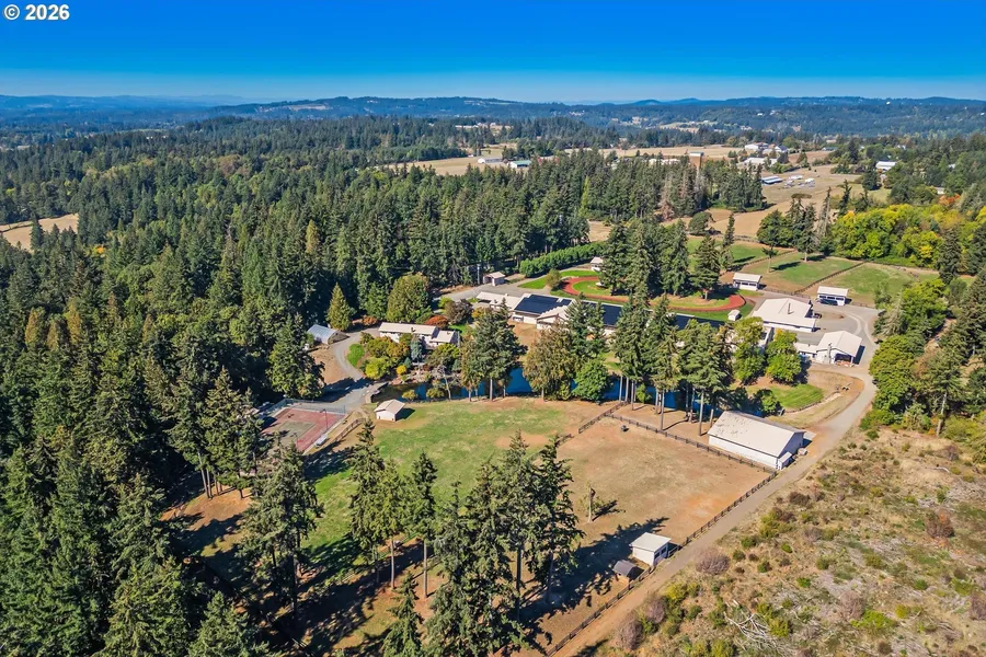 Nestled in the heart of lush landscapes,Singing Hills Stables has stood as a beacon of excellence since its establishment in 1968, and now, for the first time,this prestigious equestrian facility is available for sale. With a proud history of breeding and nurturing champion horses,the property boasts 55 spacious stalls, a hay loft, an impressive indoor arena complete with a viewing room and office space,a covered bullpen, and an outdoor red pumice track. The meticulously maintained grounds feature irrigated pastures,a state-of-the-art CO2 system,and all the infrastructure necessary to support a wide range of operations. This gated 21+acre compound includes three distinct homes and worker quarters,creating an idyllic setting for a multi-generational estate or a working farm. The main residence is a custom 3bed, 3.1bath home with over 6,500sqft of living space. Multiple balconies offer picturesque views of the backyard swimming pool and serene pond,creating a tranquil retreat. Just a short distance away,a charming 1bed, 1bath guest house awaits, complete with an attached tennis court and lounge area-perfect for enjoying warm summer evenings. Surrounded by woodlands, the property provides a peaceful oasis for tending to greenhouse starts and collecting fresh eggs. At the opposite end of the estate,the endearing "trainer's house" features 3bed and 2bath, with walls of windows offering sweeping views of the turnout pastures and four substantial run-in barns. Additionally,the property includes a spacious workshop,equipped for any mechanical engineering projects and featuring multiple bay doors, RV storage,cranes,office space,and a bath. Thanks to extensive investments,the estate is self-sufficient,powered by on-site hydro-electric and solar resources,enhancing its allure. With picturesque garden gazebos that spark visions of a charming event destination,this prime location is just 7 minutes from downtown Oregon City and 30 minutes to PDX. Opportunity to own a remarkable facility!