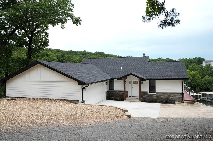 Talk about a great location! This newly remodeled 4-bedroom, 3-1/2-bath home is located in the heart of Osage Beach. Situated on the 17 mm, it offers peaceful cove protection in deep water, spectacular lake views, and a view of the new water park, The Oasis. This lake home features a 2-car attached garage with plenty of room for extra parking, a flat driveway, 95' of lake front, and two boat slips. The main level boasts a gourmet kitchen with a beautiful island with a large open floor plan perfect for entertaining, a back deck, and a relaxing master suite complete with a walk-in shower. The lower level offers a large family room, bar area, 3 bedrooms, and 2 full bathrooms. For extra convenience, there are washer and dryer hook-ups on both levels! Low-maintenance landscaping with a golf cart path down to the lake offers easy access to the lake where fun is waiting to happen. Close to lakefront and land restaurants, shopping, grocery stores, and the Bagnell Dam Strip! You won't find anything more attractive at this price! Nightly rentals allowed.