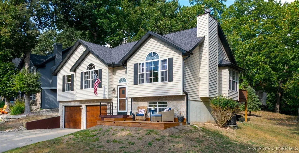 Discover this fantastic find in the heart of Osage Beach! This updated, split-level home combines a modern feel with a great layout. You'll love the architectural design of the vaulted ceilings, new premium flooring throughout and a captivating, wood burning fireplace. The kitchen is a dream with plenty of cabinet space & granite countertops, perfect for entertaining. The master suite offers a relaxing retreat with a heated jacuzzi tub, double sinks with a walk-in shower & closet. The lower level features a large family room & a half bath, which can easily be converted into a full bath. This home is truly move-in ready with a new hot water tank, roof, gutters, fascia, & soffit. The new front and back decks are ideal for outdoor living, and one is even equipped to handle a hot tub. Two car garage is great for storage. Located in a quiet neighborhood (with no HOA) at the end of a cul-de-sac just off Highway 54. You're minutes away from restaurants, the outlet mall, and the new Oasis at Lakeport. Bonus: the lot next door is available for purchase, offering an opportunity for more space and privacy. This is a must-see for anyone looking for a stylish, updated home in a prime location.