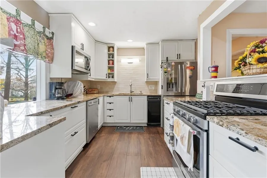 One-Level Living With Extra Space Downstairs! This charming ranch home offers a finished basement complete with a conforming bedroom and additional living area-perfect for guests, hobbies, or a private retreat. The updated kitchen features new cabinets, countertops, and a gas cooktop, blending modern convenience with style. Both bathrooms have been beautifully remodeled and now include sleek sliding shower doors and upgraded hardware. Situated on a tree-lined street that shines in every season, this home offers an inviting atmosphere year-round. Relax or entertain in the enclosed, screened-in back porch, ideal for watching the game, enjoying morning coffee, or taking in the peaceful view of falling leaves. This lovely home is one you won't want to miss!