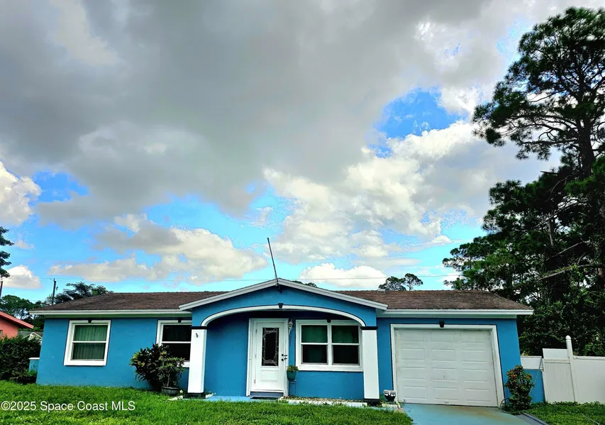 Welcome to this adorable & cozy home. Featuring a recently renovated kitchen to include new cabinets and beautiful granite countertops, and updated living room with custom wood features. The roof was replaced in 2017, ac in 2023, and there is an efficient tankless water heater. The open floor plan is spacious and charming. There are 3 freshly painted bedrooms, one and a half bathrooms, and there is tile flooring throughout. There is an attached one car garage and large fenced yard. No HOA, solid concrete construction, and city water. Conveniently located in SE Palm Bay near shopping centers, restaurants and quick access to I 95.