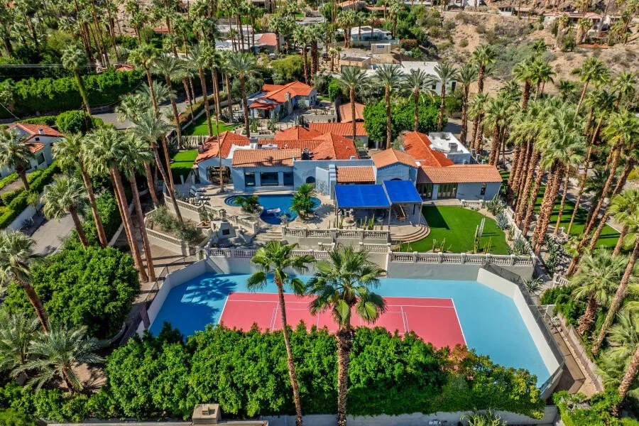 Perched on a private 1.51-acre parcel in The Mesa, the legendary Bono Estate stands as one of Palm Springs' most iconic and storied residences. Once home to Sonny and Mary Bono, the property reflects the vibrant spirit of a transformative era in music, politics, and design where Hollywood glamour meets the desert. Encompassing 8,989 square feet of refined architectural living space, the estate captures the essence of grand Palm Springs entertaining. Clean lines and walls of glass frame breathtaking mountain vistas and bathe the interiors in natural light. The main living areas flow effortlessly into one another, from the expansive great room to a formal dining area with a signature rock fireplace and a chef's kitchen with a Sub Zero Fridge, 8 burner wolf cooktop, two wine fridges, and 4 Thermador ovens that is designed for both intimate gatherings and large-scale hosting. The residence offers 7 bedrooms and 6.5 bathrooms, including a luxurious primary suite and several private guest accommodations each designed to balance elegance with comfort. Throughout, architectural details honor the era's design while blending seamlessly with thoughtful enhancements. Outdoors, the property unfolds like a private resort with a new pergola and extended patio featuring curated landscaping that have transformed the grounds into a showcase with lush lawns, multiple olive trees along with date palms, and cacti that surround the home, creating both privacy and beauty. Multiple terraces invite relaxation and privacy, overlooking the new travertine pool deck, pool, and refurbished tennis (& pickle ball) court that anchors the estate's recreational offerings, making it ideal for gatherings and events beneath the desert sky. Featuring 2 Street entrances, an oversized motor court for 12+ cars, and fully private grounds. A rare fusion of celebrity heritage, architectural distinction, and timeless sophistication, the Bono Estate represents a chapter in the story of Palm Springs. Main Entrance is on 301 W El Camino
