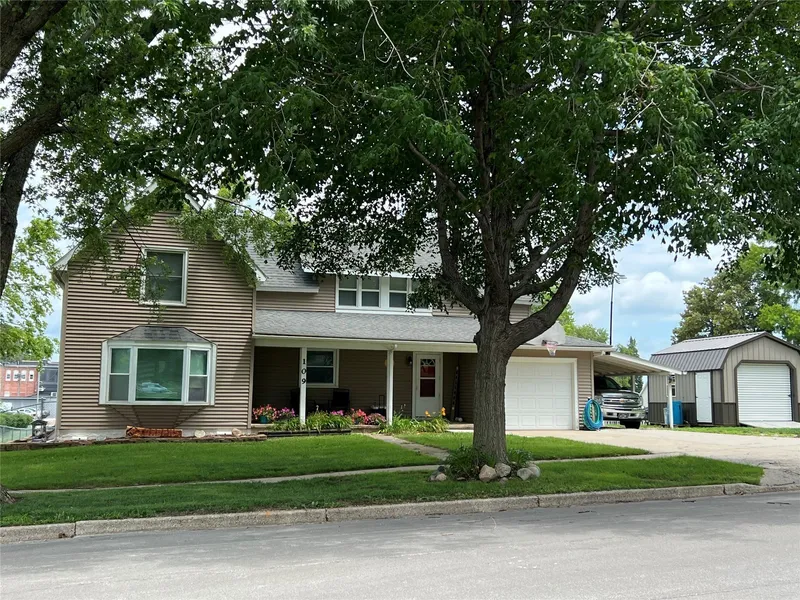 Spacious home on large corner lot in a nice, central location of town. Large family and dining rooms, sliding glass door from dining room onto a huge deck! Bright white kitchen includes stainless steel appliances. Large mud room off of the garage conveniently has a 1/2 bathroom. Upstairs are three good sized bedrooms, a remodeled full bathroom and a roomy laundry room too. Home has vinyl siding and vinyl replacement windows. HVAC system was replaced 5 years ago. Attached garage, carport and an additional 12x16 storage shed. Over 1/2 an acre lot! Panora offers quiet, small town living and great schools. The Raccoon Valley Bike Trail goes through town, Lake Panorama is nearby and it's only a 30 minute drive to Waukee and Grimes.