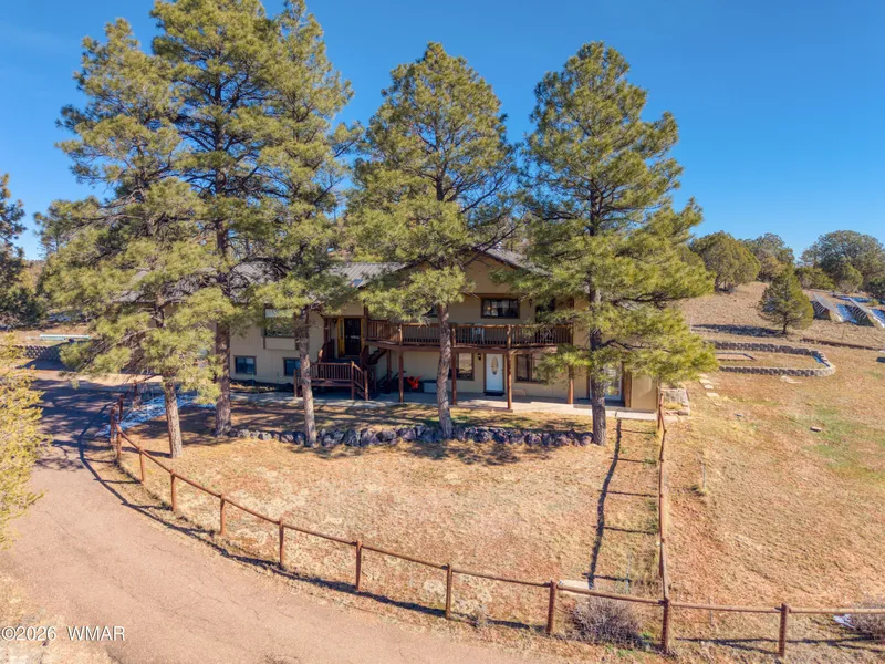 Welcome to self-sufficient living at 5408 Corda Lane in Pinedale! Just 15 minutes from Show Low, this 5 bed, 3.5 bath home on 5 Acres is built for comfort and resilience with a private well & access to a water utility provider. Power up with approximately 11,000 watts of solar panels, grid-tie & battery backup solar system. You have tall pines & open views with the National Forest just North of you which brings abundant and frequent visit from wildlife. The sunroom is available for off-season gardening and stays warm enough to grow citrus. Also features an in-wall circulating fan to move warm air in/out of the home. 2 rooms for food storage, A pantry & Large food storage room that are temperature monitored/controlled to prevent freezing plus bonus earth floor root cellar.... Continued... Additional features include 120 gallon drain-back solar/electric water heater, Covered deck right off the primary bedroom, Large loft above garage easily accessed from the 2nd Floor, RV parking and hookups. Plenty of property for houses, gardening, room to expand. Your own hill and pasture. The 2nd /Main Floor features a smaller Living/Family Room, Main Kitchen/Dining, Primary Bedroom, 2 additional bedrooms, 2 & half bathrooms & Laundry room. Heated by in wall heaters, wood stove and the air from sunroom. 1st Floor features Large Living/Recreation Room, 2 bedrooms, bathroom, office, secondary Kitchen, Large food storage pantry & root cellar. It is heated by ETS Heater & Woodstove, and in wall unit in kitchen. Both bedrooms are wired for heaters. This home was strategically designed by an engineer, so there is no guessing when it comes to updates and improvements. There is a thorough home manual available with Electrical/circuit diagrams and specific information on the Solar system and all functions of the house. Additionally, a home inspection and appraisal report completed in 2024 are available. This is THE Property to experience the county-governed community of Pinedale (no HOA) just west of Show Low at roughly 6,500' elevation, offering cooler temperatures and a true four-season, high-country mountain vibe. Nearby recreation includes Fool Hollow Lake and the Apache-Sitgreaves National Forests, with year-round opportunities and plentiful trails for hiking, biking, horseback riding, and OHV routes. Enjoy quick access to lakes, fishing, camping, wildlife viewing, and more. Come and get your Self-sufficiency, Build your dream Homestead and create that Multi-Generational family compound that will always support you and your family.