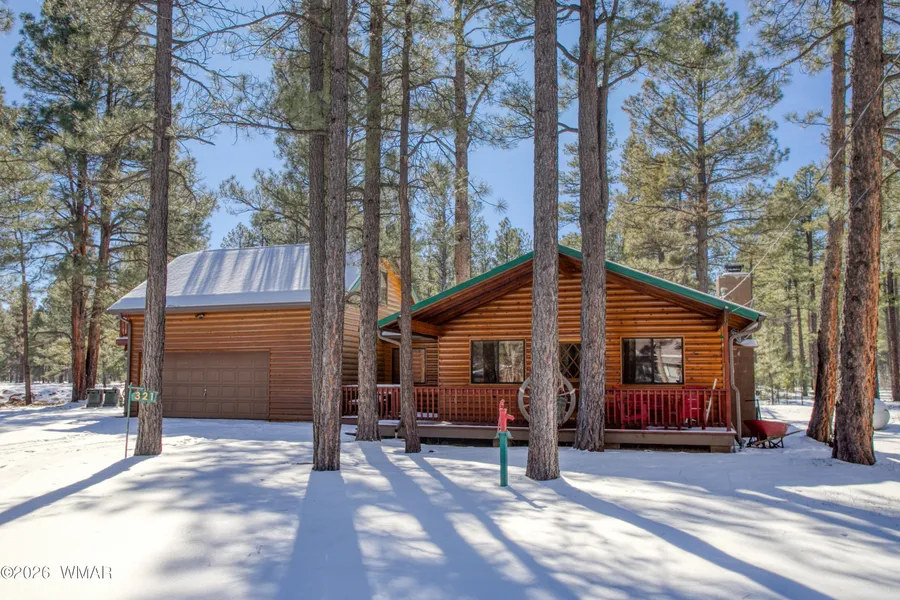 Backs National Forest in Sky-Hi-Retreat. Very cute log sided cabin on .45 of an acre backing National Forest. 3 bedroom, 2 bath, 2 car garage, metal roof, AC and forced air heat. You will love the location of this property. Just outside of town, paved road to the subdivision. Floor to ceiling wood throughout, fireplace, large rear deck to enjoy the views. A must see property and priced right. Close to everything the White Mountains are known for, hiking, fishing, camping, golf, horseback riding, off roading, nature watching etc.