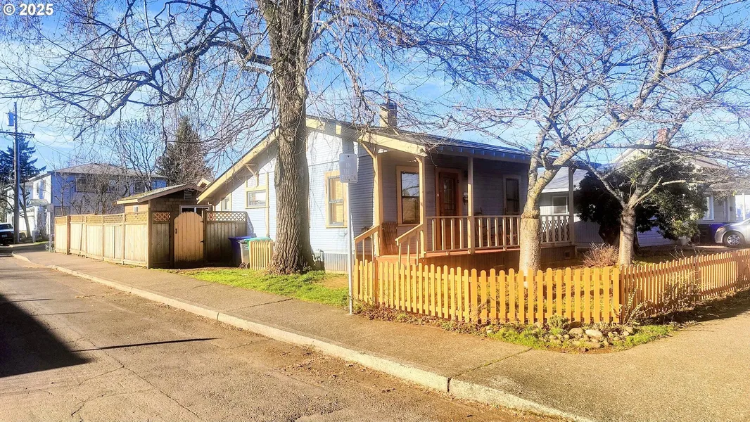 Vacant! Ranch home in nice neighborhood on corner lot. Brand-new roof in 2024. Oversized, insulated garage with hobby room offers flexible space. Gas fireplace/stove provides cozy winter warmth. Front porch deck for relaxation. Large, fenced backyard with insulated studio and front yard with rooms for gardening and entertaining. Plenty of parking for guests. 0.09-acre lot, zoned RM2, offers great possibilities and potential for adding an additional unit, subject to buyer's own due diligence. Good location with easy access to library, shopping, and dining. Minutes to beautiful Lents Park, MT. Scott Park & Essex Park. View this home today!