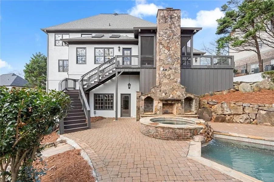 Cross the threshold into timeless elegance with this beautifully renovated home, designed for both grand entertaining and everyday comfort. The home greets you with an impressive two-story entrance. The foyer features custom diagonal tile design that has been artfully framed with beautiful wood inlays, which leads into the spacious main living areas. The home is equipped with 5 fireplaces accented throughout the home, starting with the keeping room on the main floor. The heart of the home is the open kitchen, complete with Quartz counters, KitchenAid appliances, and a hidden pantry for seamless storage. The kitchen flows effortlessly into the adjacent gathering spaces, including formal open dining, cozy living room, and screened-in porch that overlooks the inground pool. The screened-in porch and pool share a double-sided fireplace, setting the ambiance for spectacular entertainment. Wit...