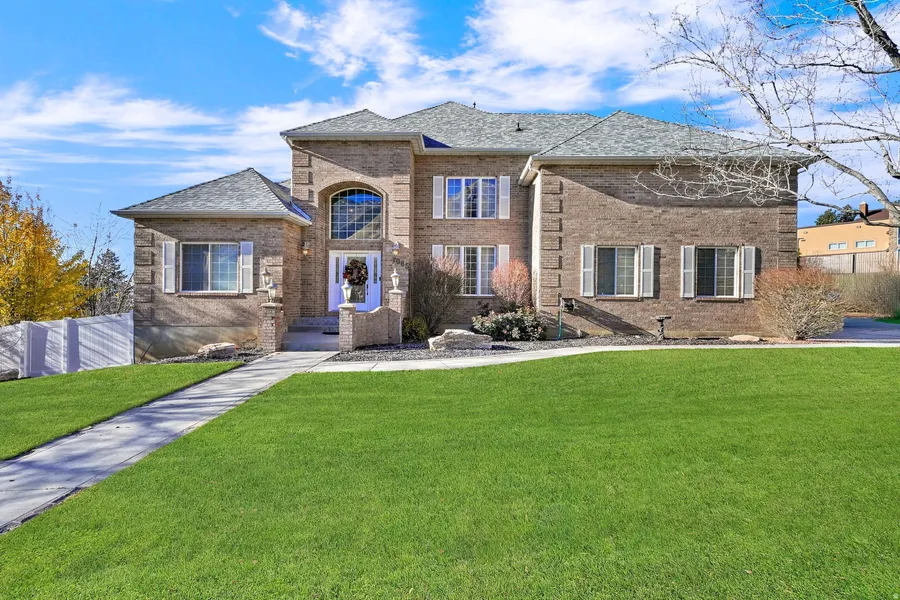 **Seller is offering $25,000 to use for closing costs, rate buy-down, or upgrades. Don't miss this incredible opportunity!** AMAZING VIEWS of the valley and all of Utah Lake from this custom-built, all-brick home. Uniquely, this sale includes an adjoining, fully improved second lot to the north, providing ample space to accommodate all your recreational needs, including boats, RVs, toy trailers or even a second dwelling. Step inside to a show-stopping entry featuring soaring 20-foot vaulted ceilings and a breathtaking chandelier equipped with a lift system. The exceptional floor plan is designed for main-floor living, highlighted by 12-foot ceilings throughout the main level and a formal living and dining area. At the heart of the home is an extra-large kitchen with custom oak cabinetry bar seating, and a spacious eating area. The main floor master suite is a true retreat, boasting a jetted tub and French doors that open onto a Trex deck, offering romantic sunset views overlooking the lake. This home is uniquely designed with master suites on all three levels, offering incredible flexibility for multi-generational living. The upstairs features bedrooms connected by a Jack-and-Jill bathroom, along with a third large vaulted bedroom with its own private full bath. The 100% finished walk-out basement is a standout, featuring an additional master suite with a second jetted bath, separate shower, and two huge walk-in closets. Ideally suited for security and storage, one closet includes a hidden vault door for safekeeping. Outdoor entertaining is effortless on the ginormous Trex deck, which features gas access for a firepit and outdoor heaters. Below, a huge, stamped concrete patio invites you to enjoy the fully fenced yard and the majestic wildlife in your own backyard. Your mind will be at ease, because the home features a brand-new roof, two water heaters, a double furnace, and 220V wiring ready for a hot tub or electric vehicle. A spacious 3-car garage completes this perfect package.