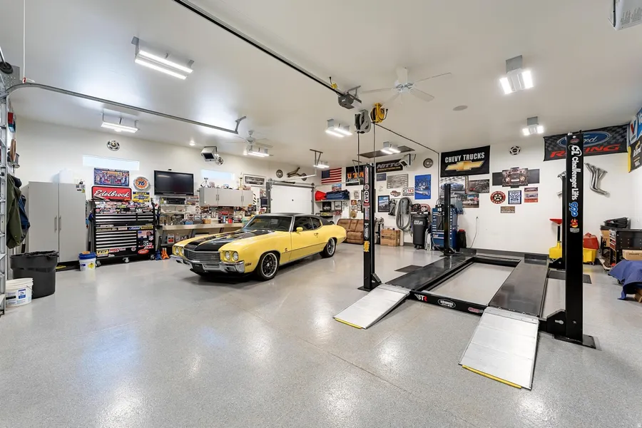 Imagine coming home to space, comfort, and freedom-1.11 acres designed for living well, playing hard, and enjoying every season. This beautifully cared-for property blends country calm with city convenience, creating a setting where everyday life feels like a retreat. Inside, soaring vaulted ceilings and a striking floor-to-ceiling fireplace set the tone for cozy evenings and effortless entertaining. The gorgeous custom kitchen will wow you with its thoughtful design. Natural light fills the home, while thoughtful upgrades-owned solar, a whole-house fan, plantation shutters, and LED lighting-add comfort, efficiency, and ease. Step outside and your lifestyle truly expands. A wrap-around Trex deck invites morning coffee, sunset dinners, and weekend gatherings. The fully fenced yard offers room to roam, play, garden, or relax beneath the gazebo, while garden boxes, irrigation, and open green space make outdoor living simple and rewarding. There's space for laughter, playsets, pets, and quiet moments alike. For hobbyists, car enthusiasts, or anyone who loves a well-designed workspace, the garages are a dream come true. The finished 34' x 34' rear garage is more than storage-it's a personal retreat with heating, epoxy floors, premium cabinetry, sound system, and room to create, build, or unwind. The front garage and covered canopy add even more flexibility for toys, tools, and projects. This is a home built for people who value space, craftsmanship, and lifestyle-a place where memories are made, passions are pursued, and pride of ownership is felt in every detail.