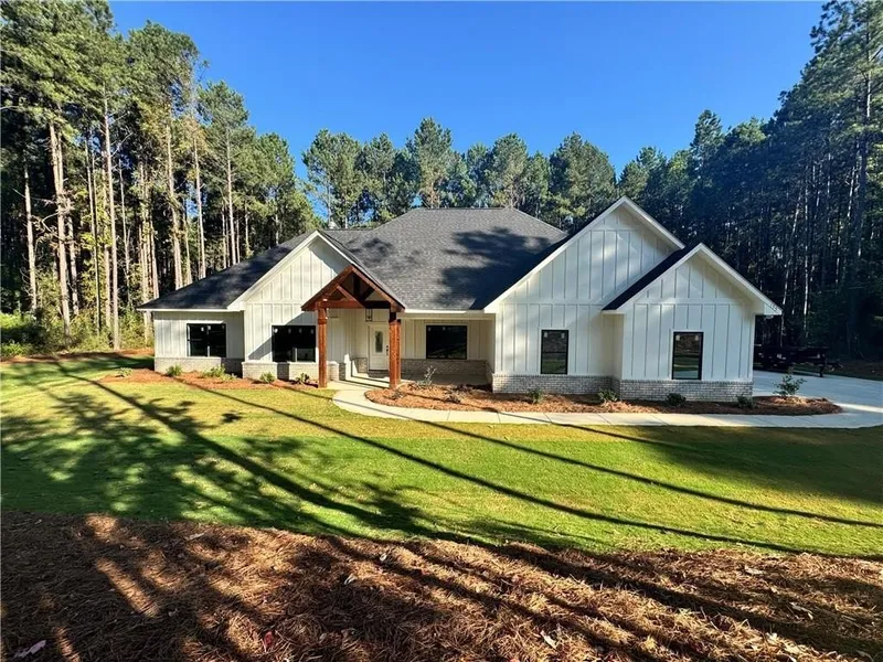 This beautiful custom home, sitting on four serene acres is calling your name! The moment you walk in the front door, you are greeted with a formal dinning room, open concept kitchen, and spacious living room with a vaulted ceiling. The huge laundry room and walk-in pantry make this floor plan a must see! The master bedroom offers tray ceilings, an en-suite bathroom with his and her vanities, and a huge walk-in closet. The remaining 3 bedrooms are on the other side of the house, away from the master, and all three have great space and nice closets. You will also find the remaining full bath on that side of the home. Your guests will have the option to use the half bath that is located off the kitchen. You can relax at the end of a long day on the rear covered porch, enjoying the tranquility of the backyard! This new construction, split floor plan home has so much to offer.