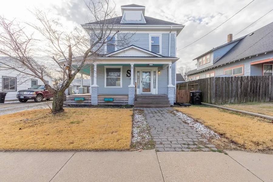 Charming Two-Story Home with Stunning Original Woodwork & Modern Updates Welcome to 523 W. Prescott St. - a timeless two-story home full of character, craftsmanship, and thoughtful updates, nestled in a quiet Salina neighborhood. From the moment you arrive, you're greeted by a wrap-around covered front porch, perfect for morning coffee, evening cocktails, or simply enjoying the outdoors. Step inside to a large, welcoming entryway showcasing beautiful original woodwork, rich wood floors, and a striking staircase complete with rare vintage "dust catchers" - a detail you don't see every day and a true nod to the home's history. The main level offers two spacious living areas, providing flexibility for entertaining, relaxing, or turning the back room back into a bedroom. A formal dining room filled with natural light sits just off the main living space, ideal for hosting gatherings and holiday meals. The gorgeous kitchen features ample counter space and a dedicated coffee or cocktail bar, blending style and function seamlessly. Convenience continues with main-level laundry, a dog door, and easy access to the private fenced backyard. Outside, you'll also find a small back deck, a private driveway, and a one-car detached garage, offering both privacy and practicality. Upstairs, the home features three bedrooms and one bathroom, including a large primary suite with an oversized bathroom with entry from the bedroom or the hallway and an impressive bonus room previously used as a massive walk-in closet - a dream setup for anyone needing extra space. Additional highlights include: A brand new water heater, a new Viega water Manabloc system, windows replaced approximately 4 years ago, unfinished basement with great storage or future potential With its blend of historic charm, thoughtful updates, and flexible living spaces, this home offers warmth, personality, and functionality in one beautiful package.