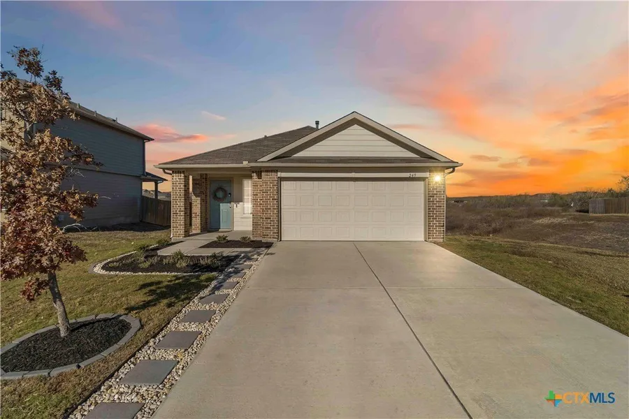 In our opinion, this home sits on one of the most desirable lots in the neighborhood. This special one-story home offers no back neighbors and backs to permanent greenspace with planned walking trails, providing long-term privacy with no future development behind the property. Additional buffers include a wide drainage easement on the east side and a smaller buffer on the right-hand side, creating more space and separation than a typical subdivision lot. Built in 2022, this one-story, three-bedroom, two-bath home offers just over 1,500 square feet of thoughtfully designed living space. The home has been immaculately maintained and shows pride of ownership throughout. The bright, open kitchen features extra seating at the island and opens seamlessly to the living area, making it ideal for both everyday living and entertaining. The primary bedroom serves as a relaxing retreat, enhanced by a striking accent wall that adds a touch of luxury. The covered back patio faces the morning sun, allowing for shaded and comfortable afternoons outdoors. The home includes a garage door opener and refrigerator, with washer, dryer, and patio furniture negotiable. Cottonwood Creek offers excellent neighborhood amenities, including a splash pad and two parks with playgrounds, with the larger park within walking distance. An elementary school is located within the neighborhood, and the high school is less than five minutes away. Lots like this do not come along often-schedule your showing and experience this home for yourself.