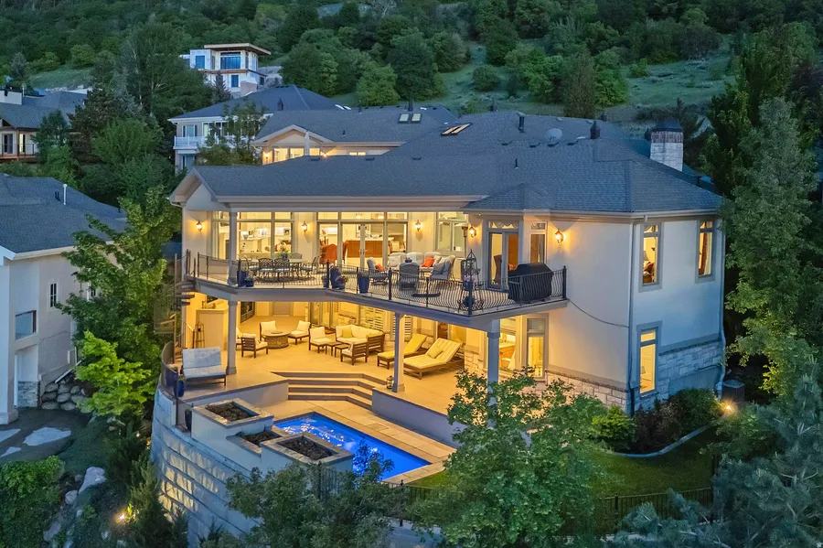 Experience the ultimate million-dollar panoramic views of the Salt Lake Valley and dramatic cliffs and colors of Little Cottonwood Canyon. Beautifully reimagined architecture brings exceptional quality craftsmanship, refined details and stunning features (the primary suite closet is to die for). Enter through the vaulted marble foyer into a grand great room anchored by a chef's dream kitchen-featuring top of the line appliances and dual oversized islands and expansive pantry, open dining room and exquisite temp-controlled and illuminated wine room, custom wood surround office and a main floor primary suite- all masterfully designed to keep the breathtaking views the centerpiece. An elegant, curved staircase ascends to a spectacular upper-level second primary retreat, complete with a spa-inspired bath featuring a custom round tub and a walk-in closet to rival all. The lower level is bright and spacious, offering a secondary great room, full kitchen, exercise studio, theater, laundry, three bedrooms, and two bathrooms-all with direct walkout access to a covered patio and a private saltwater pool with outdoor shower. Lutron Programmable Lighting (Connects through phone). Two private decks extend the living space outdoors, a four-car garage, and a heated driveway elevate everyday convenience. Framed by a tranquil waterfall and serene stream. One of Salt Lake's most exclusive estates, this home combines privacy and prestige with unmatched proximity to world-class ski resorts, premier medical centers, fine dining, shopping, and entertainment. *Square Footage is provided as a courtesy only. Buyer is advised to obtain an independent measurement and verify all information.*