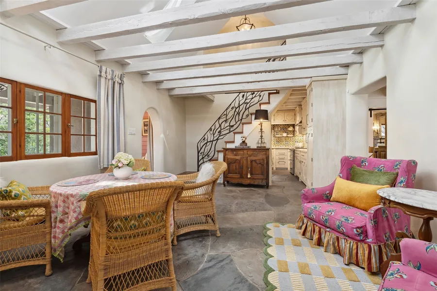 Nature-lover's paradise on 6 Acres- Tucked beneath red rock hills--Cross the bridge from Sibley Road and enter your private sanctuary nestled on six acres of lush, mature land in the serene community of Canoncito. This one-of-a-kind property features a thoughtfully updated three-bedroom, two-bathroom adobe and frame main house that blends timeless charm with modern luxury. Highlights include fully renovated luxury bathrooms and a gourmet kitchen with artisan tile, locally crafted ironwork throughout, and new sustainable wood floors. The home showcases diamond finish plaster and low-VOC finishes, ensuring both beauty and environmental consciousness. The hand-built guest house, perfect for visitors, rental income, or a creative studio, includes a cozy bedroom, 3/4 bath, kitchenette, and a loft. Attached is a greenhouse for year-round gardening. Outdoors, you'll find a detached carport/shop featuring stonework sourced from the nearby Glorieta Mesa, which doubles as an open-air workspace or additional storage. A traditional underground kiva structure provides a private ceremonial space. The grounds are a horticultural haven with old-growth cottonwoods, pinons, and raised garden beds. A private well adds to the property's potential for self-sufficient living. Whether you're a homesteader, gardener, artist, or seeking a peaceful retreat, this property offers the perfect setting. Set in a classic rural NM neighborhood, the house sits on three acres fenced in with coyote fencing, providing safety and privacy. An additional three acres remain wild, with a neighborhood path leading you to public hiking trails and sunset views. Located just 25 minutes from downtown Santa Fe, this tranquil retreat offers the best of both worlds: a private haven with access to the vibrant city. With its artisanal remodel and high desert landscape, this property is an extraordinary opportunity for those seeking comfort, luxury, and self-sufficient living.