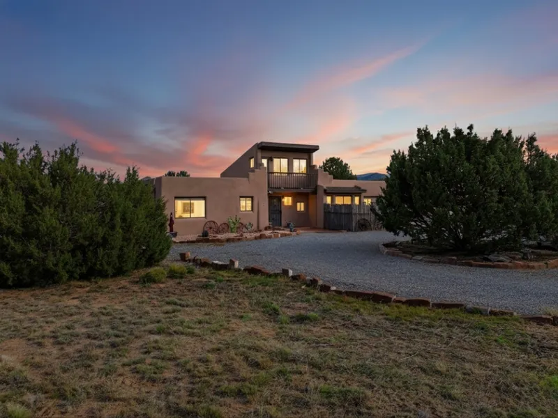 A serene Santa Fe retreat in the coveted Eldorado community. This beautifully designed 3-bed, 2-bath residence sits on 1.64 acres with sweeping mountain views and the peaceful rhythm of desert living. Light-filled interiors feature high ceilings, tile floors, and a Kiva fireplace that adds warmth and timeless Santa Fe charm. The kitchen and living spaces open to a private patio perfect for entertaining or quiet starlit evenings. Experience tranquil country living just minutes from Santa Fe's Plaza, galleries, and fine dining. The spacious lot offers room to garden, relax, or expand. A perfect blend of comfort, elegance, and Southwest beauty, schedule your private tour today and see it for yourself.