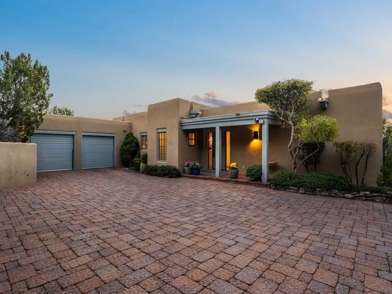 Nestled in a private gated neighborhood just five minutes from Canyon Road, this stunning 3-bedroom, 3-bath residence captures the essence of Santa Fe living with breathtaking views and refined details throughout. Arrive via a paver-lined driveway leading to a spacious two-car garage and be welcomed into a home built for both comfort and sophistication. Inside, French limestone imported from Forte dei Marmi flows seamlessly throughout, complemented by exquisite diamond finished plaster walls that add depth, texture, and timeless elegance. The expansive floor plan opens to over 800 square feet of covered portals, perfect for entertaining or savoring quiet evenings while soaking in the dramatic vistas. The gourmet kitchen is appointed with high-end finishes and appliances, designed to satisfy both everyday living and special occasions. Each bedroom offers privacy and comfort, complemented by spa-like baths. With its combination of architectural elegance, premium materials, and proximity to Santa Fe's vibrant art and dining scene, this home offers a rare opportunity to enjoy luxury and convenience in one of the city's most sought-after locations.
