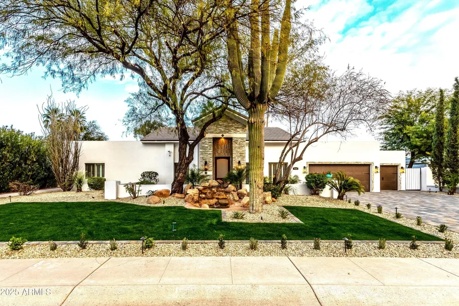 Welcome to this stunning 3,484 sq. ft. home with 3 car garages, built in 2006 and completely renovated inside and out, nestled in the heart of McCormick Ranch one of Scottsdale's most desirable communities. Step inside to a bright, open-concept floor plan featuring 5 bedrooms 5th bedroom can be used as an office and 3 full bathrooms. The chef's kitchen is a true showpiece,offering custom cabinetry,elegant quartzite countertops, high-end appliances, and a large island perfect for both cooking and entertaining. high ceilings thur-out the house, sliding doors that open to the patio, creating a seamless indoor-outdoor living experience. Enjoy the Arizona lifestyle with the outdoor BBQ & pool area,The primary suite has a marble bathroom ,soaking tub,and elegant walk-in shower and his & her closet