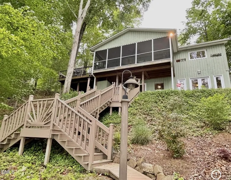 Extraordinary long range lake views surround this house at Hyco Lake. 2 bedrooms.....2 guest rooms.... and 3 1/2 bathrooms!! Majority of house renovated in 2009! All furniture conveys (except a few items)!! Screened in porch just beckons you to take in THAT VIEW and just relax. 14 ft of water at the double slip boathouse. Paved golf cart path to the boathouse (golf cart conveys). Gorgeous hardwood floors. Master bedroom is private from the rest of the house, and has its own bathroom, and it's own exit outside. Main level bedroom has it's own bathroom, and it's own private outside deck! The two guest rooms, share a bathroom, and have their own exit outside also! No restrictions! Outdoor shower!