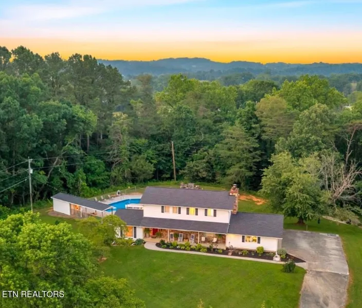 Private Estate with Resort-Style Amenities on 6+ Acres Tucked away in scenic Boyds Creek, this secluded home offers over six acres of peaceful countryside. A gated entrance and tree-lined drive welcome you to a private setting with a pool, pond, and versatile outdoor living spaces. Inside, the main level features a spacious living room with a stone fireplace, well-appointed kitchen with ample cabinetry and a walk-in pantry, dining area, sunroom with natural wood accents, and a flexible office or bonus space. Upstairs includes two guest bedrooms and a full bath, plus a sprawling primary suite with vaulted ceilings, dual sinks, and a massive walk-in closet. The finished walkout basement is designed for entertaining-complete with a custom bar, recreation zone, second fireplace, gym space, sauna, and half bath. Enjoy multiple outdoor entertaining areas: a covered patio, grilling station, fir...