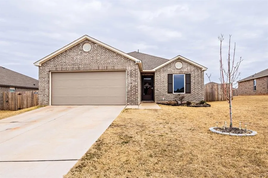 Located in the Grove School District within the Wildwood neighborhood, this thoughtfully designed home offers a functional layout paired with modern finishes and everyday comfort. The open living area flows seamlessly into a large eat-in kitchen, creating a space that works equally well for daily routines and gathering with guests. Luxury vinyl plank flooring runs throughout the home, providing durability and a cohesive feel from room to room. The kitchen features ample cabinetry, a dedicated pantry, and generous counter space, making it both practical and inviting. The primary suite is positioned for privacy and includes a spacious walk-in closet along with an en-suite bathroom designed for everyday ease. Two additional bedrooms offer flexibility for a variety of needs, while the second full bathroom is conveniently located nearby. Additional highlights include a two-car garage with an in-floor storm shelter for added peace of mind. Out back, a covered patio overlooks a large, fully fenced yard, offering space to relax, entertain, or enjoy outdoor activities. This home brings together modern construction, efficient use of space, and comfortable living in a desirable Grove School District location.