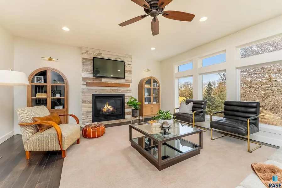 55K Price Reduction! Cul-de-sac. Trees. Privacy. Community. This is Arbor's Edge! Easy living. Thoughtful design. A setting that stands out. This walkout two-story is located on a quiet cul-de-sac. Perfectly placed across from neighborhood amenities including outdoor pool, clubhouse, fitness room, playground, sport court and more. .45 acre of private, tree-lined backyard with floor-to-ceiling windows and natural views. The home features 4-5 bedrooms, 5 bathrooms, plus a dedicated office. All of the bedrooms feature walk-in closets. The primary suite, located on the upper level, has cottage style charm with plantation shutters and flexible spaces to customize to your liking. The home features two gas fireplaces and exposed beams in the lower level, adding a custom rustic feel that blends beautifully with the nature behind. In the kitchen, find a large island and a walk-in pantry with a functional, flexible layout. The dining space is large and can host a large table with 6-8 chairs or set it up as another sitting room. There is space to use to your liking. The screened-in porch plus two additional tiers of deck allows for up close and personal views of nature and the sound of tree leaves crackling in the wind. The rare 4 stall garage provides options for storage and hobbies. This home sits near the Willow Run golf course and the Big Sioux River providing options to live an active lifestyle, close to nature and shopping conveniences.
