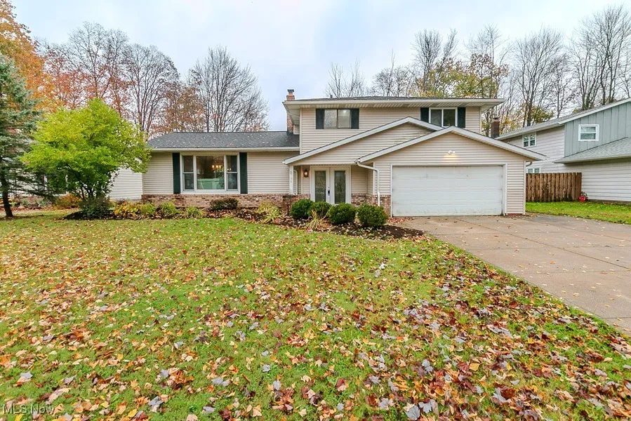 Welcome to this beautifully updated split level in one of Cleveland's most desirable suburbs and top rated school districts. Nestled along the tree-lined streets of Colonial Forest Estates, this home combines modern comfort with timeless appeal, just minutes from I-422 and downtown Solon. Glass French doors open to a spacious foyer with plenty of room for coats and shoes. High ceilings with exposed wood beams and large picture windows bring light and warmth to the main living area, while an adjoining dining space connects effortlessly to a newly built deck overlooking the open backyard, an inviting spot for gatherings or quiet evenings outdoors. An eat-in kitchen stands out with custom gray Shaker cabinetry, granite counters, and brand new stainless appliances. Just a few steps down, a second living area offers added versatility with a wood burning fireplace, new windows, and sliding doo...