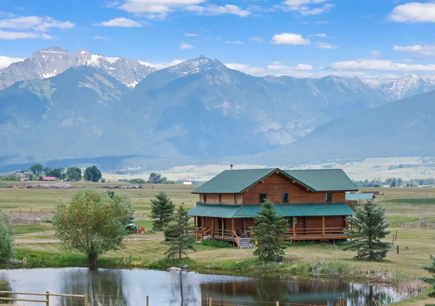 Custom log home on 20 acres divided into 2 legal parcels. This beautifully crafted home spans over 4,700 square feet across three levels, including a tuck-under garage. Built by Legacy Log Homes with hand-selected character logs, the home radiates warm, rustic charm. Comfort meets efficiency with zoned radiant floor heat on each level -even the garage-and a woodstove on the main floor that adds both cozy ambiance and fantastic heat. The spacious kitchen and dining area open to a covered deck, where breathtaking views of the Mission Mountains and valley stretch before you. The main floor also includes a bedroom/office and full bath. Upstairs, the expansive master suite features its own private balcony, while a vaulted, multi-purpose room offers flexible space for a studio, family room, or second suite. The 20-acre property is legally divided into two parcels: the home occupies 5 acres, and the neighboring 15-acre parcel already has it's own well, power and hay barn - ideal for agricultural use, expansion, or future investment. Each parcel also features a pond that attracts abundant bird and wildlife. Each parcel has district irrigation. Versatile, spacious, and surrounded by natural beauty, this property is perfect for multi-generational living, home-based businesses, or your personal vision. A rare and remarkable opportunity in a tranquil Montana setting.