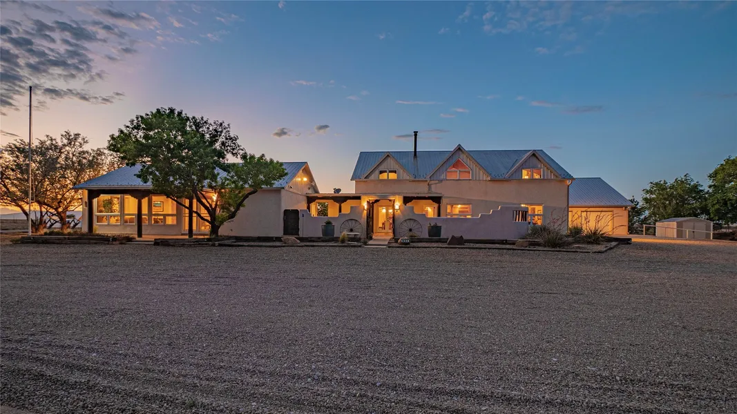 Rammed earth residence a total of 4,894 heated square feet, includes main house 3,099 sq ft and 1,795 sq ft casita. Casita would be perfect office or workspace, conveniently located. The main residence features four bedrooms and three and a half bathrooms, complemented by a flexible second living area that can function as either an office, library or tv room. The construction also emphasizes energy efficiency, contributing to overall savings. The property encompasses a total of 200+ acres fully fenced & crossed fenced. Gated entry, featuring a solar opener. 54' x 60' Eagle Steel Building, includes two interior frost-free faucets, 3/4" rubber mats, covered outdoor pens, and insulated ceilings for optimal climate control. 40' x 42' metal barn equipped with 220-volt electricity, pipe corrals, a storage with saddle racks, insulated garage doors, and concrete flooring. 10' x 14' greenhouse, an 8' x 12' Weather King portable building, a 12' x 12' feed shed, a 10' x 10' garden shed, and chicken coop with an enclosed run, making it ideal for agricultural pursuits. Equipped with a standby generator for the home & casita ensuring continuous electricity for the essentials. Gutters for effective water management across the home, casita, and barns. Interior & exterior spaces include tongue and groove, sturdy posts, beams, and corbels. The landscape is well-established, showcasing mature trees and a variety of fruit trees. An automatic bubbler and drip irrigation systems ensure efficient watering, while two courtyards provide additional outdoor living areas. The property is further enhanced by flagstone patios and sidewalks, creating inviting pathways throughout the low maintenance grounds. An attached insulated and finished two-car garage is complete with a locking storage room for added convenience. Additionally, the home & casita offer a finished attic space for additional storage. This property has it all and is waiting for you!