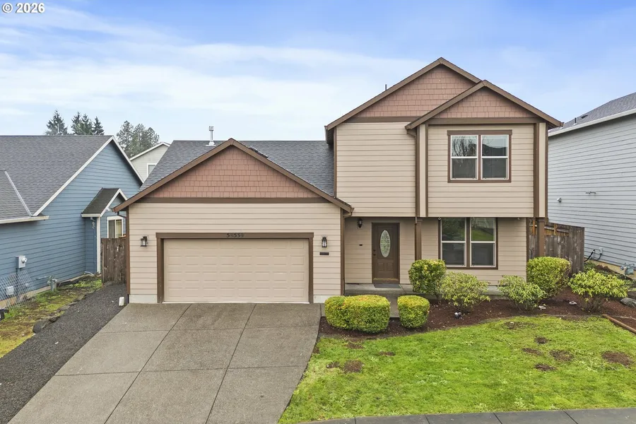 Tucked away on a quiet private street, this 3-bedroom, 2.5-bath home offers 1,541 sq ft of thoughtfully planned living space designed for both comfort and functionality. Built in 2015 and recently refreshed with brand-new carpet, this home is truly move-in ready. Upon entry, you're welcomed into a separate living room featuring a gas fireplace, creating a cozy and inviting space to unwind. The heart of the home is the open family room, kitchen, and dining area, ideal for gathering and entertaining. The kitchen showcases granite countertops, LG stainless steel appliances, generous cabinetry, and convenient access to the backyard. Laminate flooring on the main level provides durability and continuity throughout the space. A main-level laundry room and half bath add everyday convenience. Upstairs, the vaulted primary suite offers a relaxing retreat with a walk-in closet, double vanity, and ...
