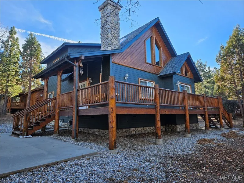 Stunning Craftsman-style home, (Chalet style) beautiful high wooded ceilings, located in the Big Bear Pine subdivision in Sugarloaf, large lot .36 acre parcel, (15662 Sq. Ft. parcel.) with many mature trees, 3 bedrooms plus large loft, 2 bedrooms on main level, laundry room, great river rock fireplace, Kitchen is open to dinning and living room, upstairs you will find a master bedroom with jetted tub and private deck looking out into the beautiful forested back yard, also upstairs a large loft with mountain views, lots of parking for RV, boat storage and plenty room to add an ADU (accessory dwelling unit) comes fully furnished