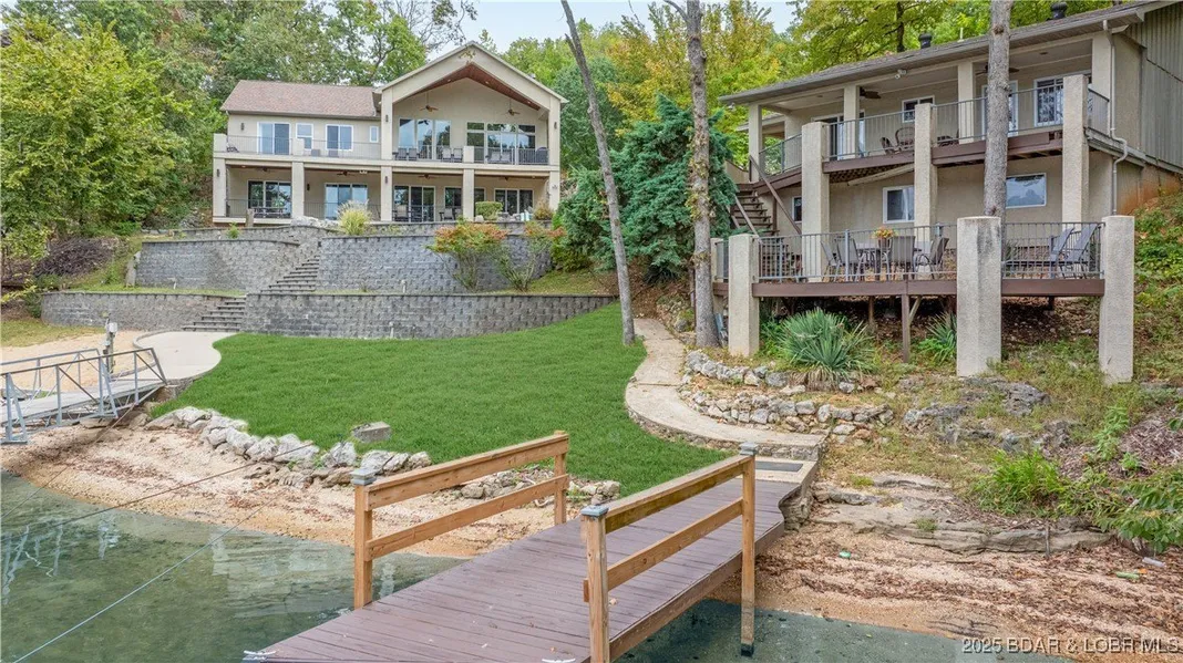 Welcome to a premier Lake of the Ozarks rental opportunity, featuring two homes on one idyllic property. The main house spans 4,910 SF and includes 7 ensuite bedrooms, a spacious kitchen, living and dining areas, vaulted ceilings, a game room, a full bar, and expansive decks on dual levels. The second home is 832 SF, with 2 ensuite bedrooms, a full kitchen, and living room, all with lake-facing upper and lower decks. Both dwellings sit on 1.17 private acres, tucked away in a beautiful cove, right off of the main channel! Enjoy a shared outdoor oasis that includes a large yard, fire pit, hot tub, beach area, and a private dock equipped with 2 boat wells, a jet ski lift, and a swim dock. New HVAC and roof in the last year! Located on the 24MM of the Osage Arm, this property is a highly sought-after rental with impressive annual bookings. Act now to own this exceptional lakeside retreat!
