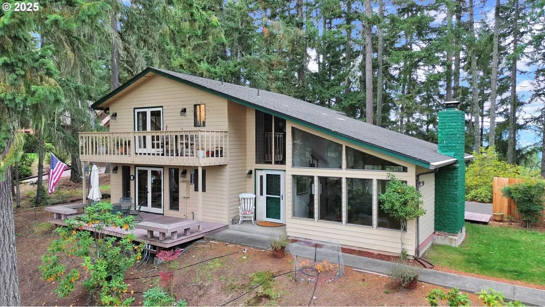 Welcome to this warm and inviting 3-bedroom, 2.5-bath, 2,016 sq. ft. home on a generous 1/2 acre lot in the desirable Cooper Creek neighborhood, just minutes east of downtown Sutherlin. Enjoy a tranquil setting with fishing, boating, and swimming at Cooper Creek Reservoir only a stone's throw away. The bright living room features soaring ceilings, two walls of windows, and a cozy fireplace that fills the space with natural light. A spacious family room with ceiling fan, a pellet stove, and doors leading to the back deck, creates a perfect flow for entertaining. The open dining area connects to the kitchen with stainless steel refrigerator, built-in dishwasher, and an eating bar for casual meals. Upstairs, you will find all three bedrooms and two full baths, offering great separation of space. The primary suite includes a private balcony with peaceful, tree-lined views of the lake, an ide...