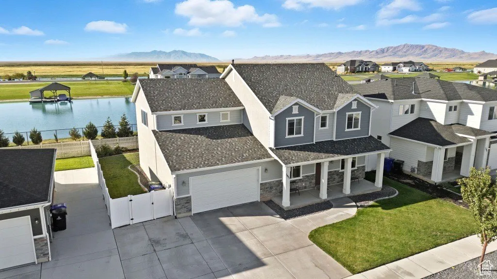 Rise to vacation views every day. This unique property is all about location. With mountain views on each side, you'll experience the serenity of lakeside living with convenience of neighborhood amenities. Walk the paved trail directly from the gated backyard and arrive within minutes to clubhouse pool, gym, and parks. This exclusive neighborhood provides nestled privacy with quick access to golf course, dance and gym studios, groceries, and the freeway. Within the home you'll experience thoughtful upgrades and design optimization. Be greeted at the foyer by grand glass paneled office doors and a comfortable music room. Spacious great room and gourmet kitchen are flooded by natural light and stunning lakeside views. The great views continue upstairs where you'll find a large and versatile multi-purpose bonus room. The wide viewing windows and oversized space provide limitless use options. Master bedroom includes gorgeous lake views too with generous walk-in closet. Outside find extra parking spaces with wide pad, irrigated garden with dedicated secondary water spout, extra wide patio, and storage shed. Solar panels take advantage of the ample sunlight, with battery in garage set up for EV charging. Extra wide and tall garage includes third tandem spot within for even more multi-purpose uses. Exciting things coming to the neighborhood within short walking distance: 50 acre regional park going and elementary school is opening for 2026 school year: Please note all information is deemed reliable but not guaranteed and should be independently verified.