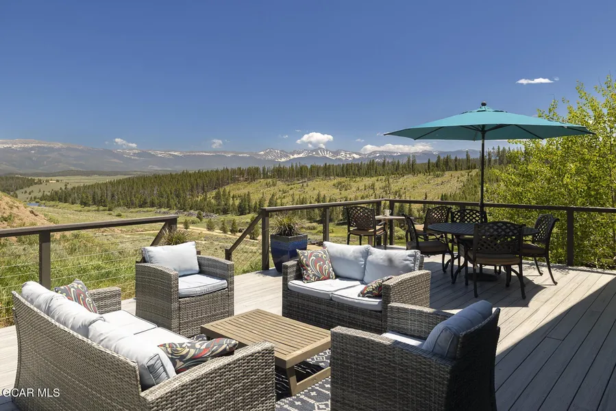 Welcome to your dream mountain escape! Nestled in the heart of Grand County, this stunning home in Tabernash offers panoramic views of the Continental Divide and the surrounding Rockies. Situated on almost 5 acres and featuring 4 bedrooms, 3 baths, and 3400 square feet of thoughtfully designed living space, this property blends rustic elegance with modern comfort. The high ceilings, large picture windows, and an open-concept layout flood the interior with natural light and frame the majestic mountain vistas. The gourmet eat-in kitchen boasts high-end appliances, granite countertops, and custom cabinetry-perfect for entertaining or family dinners. The spacious great room with its hickory hardwood flooring centers around a stone fireplace, creating a warm, inviting atmosphere year-round. Enjoy the views while sipping coffee, hosting cookouts, or just relaxing in the evening on the new oversized deck right off the kitchen and dining area. Enjoy a framed view of Byers Peak from the primary bedroom and relax with more views while soaking in the tub in the primary en-suite bath on the main floor! Two more bedrooms (one currently being used as an office has a built-in safe) and a recently updated bathroom complete the main floor. On the lower level you will find a large second living area with tons of windows, access to the yard and beautiful slate flooring - a perfect spot for family movie nights or game nights, another bedroom and bathroom, and a bonus man-cave/hunting room/storage room. The two car garage is extra deep with a built in work-bench and plenty of space for all your mountain toys. This home is the perfect spot to get away to your own private sanctuary and is centrally located providing easy to access all Grand County has to offer.