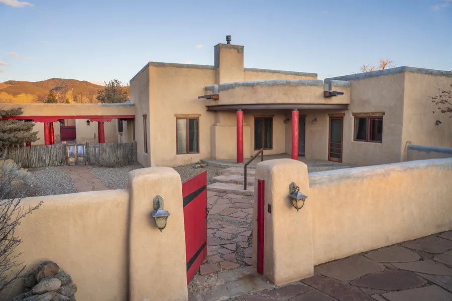 A piece of Taos History is waiting for its next chapter.... The Estate of Taos visionary Gene Sanchez, known for his contribution to Taos politics, art & architecture, offers an opportunity to shape the landscape of Taos' future. This historic estate includes an approx 3700 sq ft, 4 bed/3 bath adobe main residence that is accompanied by two charming casitas that provide stunning views of Taos Mountain. Partial basement under the main house. Designed with artistic precision and attention to detail, the home features timeless traditional Southwest architecture with modern lifestyle comforts. Ahead of his time, Sanchez designed the home to have retreat style feel that includes 3 ensuite bedrooms. The spacious master suite includes a fireplace and a private patio with sought-after mountain views, while the fourth bedroom enjoys an adjacent private bath. The home showcases rich hardwood floor...